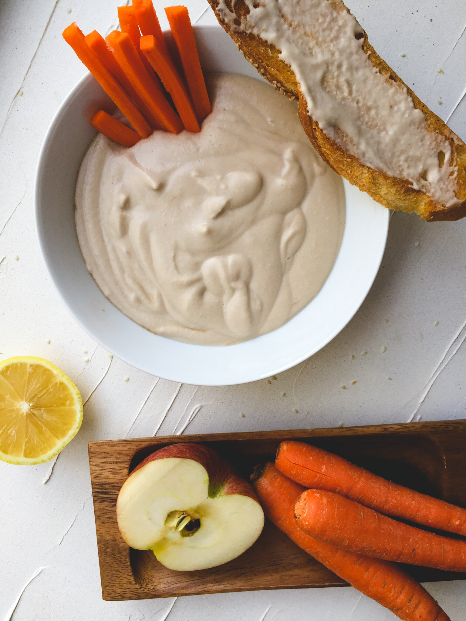 It is so easy to make, so versatile, and so cheap. It works perfectly as a dip for veggies, apples, chips, and pretzels. It works equally well as a spread on toast, crostini, wraps, and burgers. Essentially, use it wherever you would use mayo or hummus.