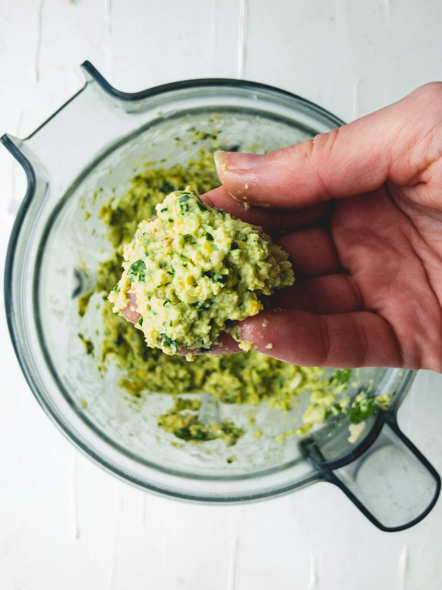 3. Whether using a food processor or a Vitamix, be sure to transfer the mixture to an airtight container and refrigerate for at least three hours. The batter becomes easier to roll into a ball and the flavors meld together. While you can skip this step if you absolutely have to, I advise against it.