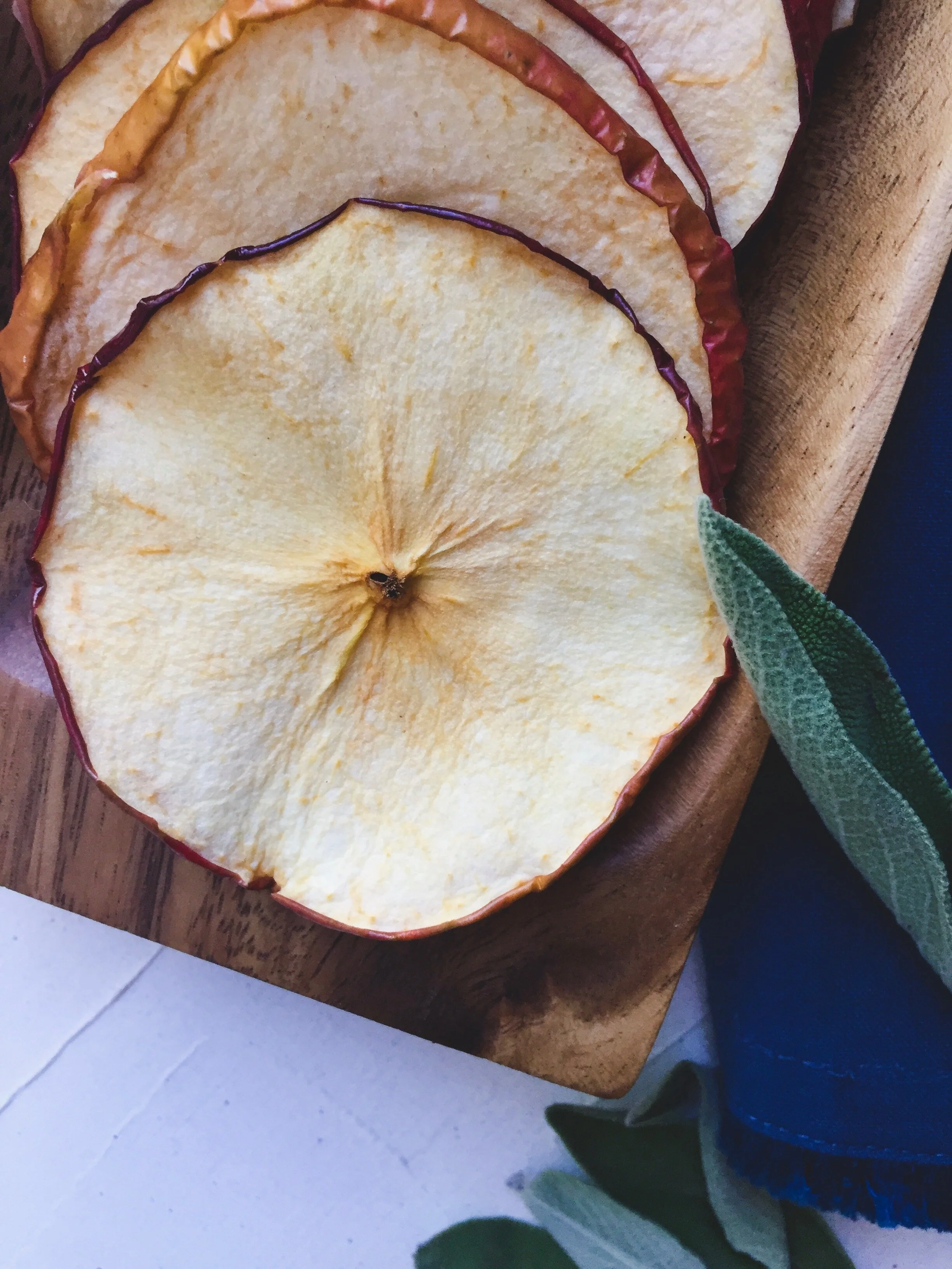 None of my local grocery stores had dried apples, so I made my own with my food dehydrator. If you can locate dried apple slices, ensure they are free of added sugar and cinnamon. We want plain apple slices. If yours are so dry they are crunchy and chip-like, rehydrate them in some hot water for a few minutes before chopping. If all of this sounds like too much work, just use an equal amount of diced apple.